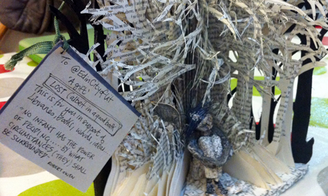 But the story doesn’t end there — or rather it doesn’t begin there. These two paper sculptures are only the most recent gifts left anonymously to Edinburgh-based arts groups throughout the year. The Scottish Poetry Library, the National Library of Scotland, the independent Filmhouse cinema, and the Scottish Storytelling Centre have all found themselves surprised and delighted recipients of these beautiful artworks. Wander over here for full details and photos.