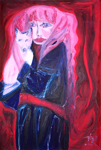 The painting is called “Girl Holding Fox” and the artist is Ingrid de Ridder, although I have no idea who she is beyond being a woman who hung some canvases in a cafe in Balaclava. She doesn’t come up in google, although she might one day, so I hope she doesn’t mind that I took a photo of her work and put it on my website. Now, if you’ll excuse me, I’m going to have a talk with a pink-haired girl and her fox about this novel I’m meant to be writing.